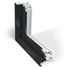 PVC intérieur. Profilés multichambres très robustes procurant une rigidité et une performance énergétique supérieures. Aluminium extérieur.